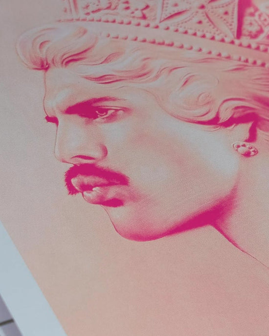 More than just a little bit special, this exclusive art print is a show-stopping celebration of the one and only Freddie Mercury. Dressed in fittingly regal attire, Freddie is reimagined in the style of a vintage Queen Elizabeth postage stamp—blending royal flair with rock royalty. Bold, witty, and unmistakably iconic, this piece is the perfect gift for any devoted Queen fan or a striking addition to your own gallery wall.