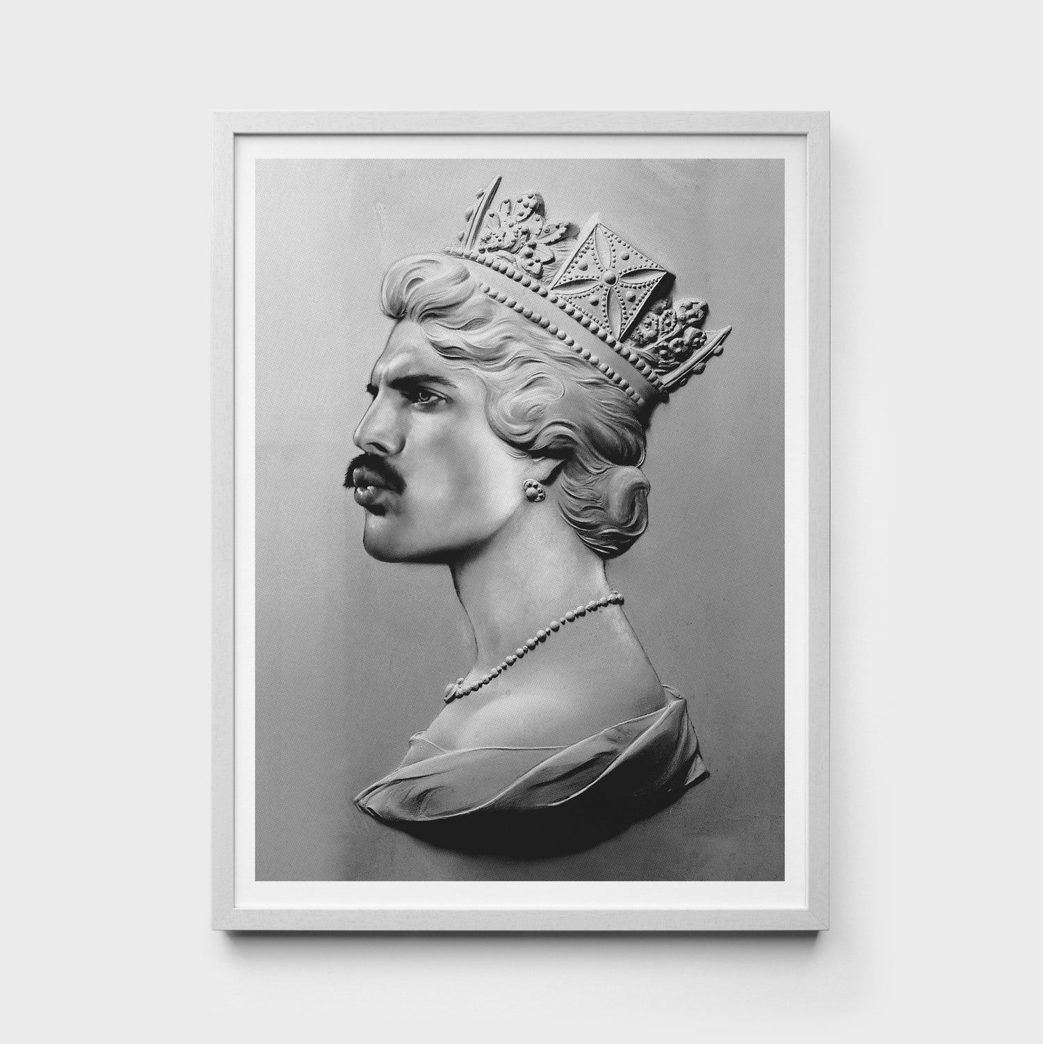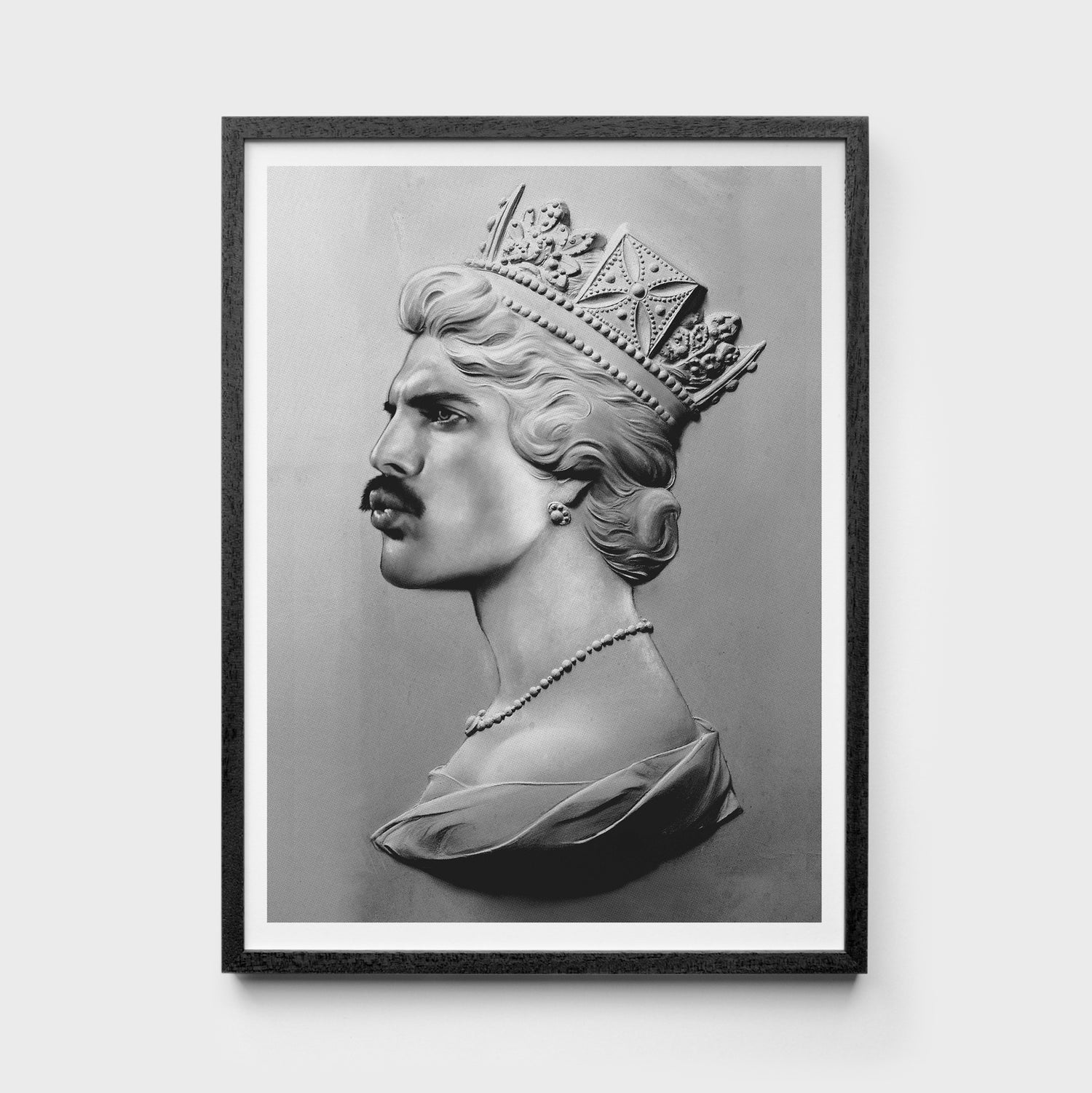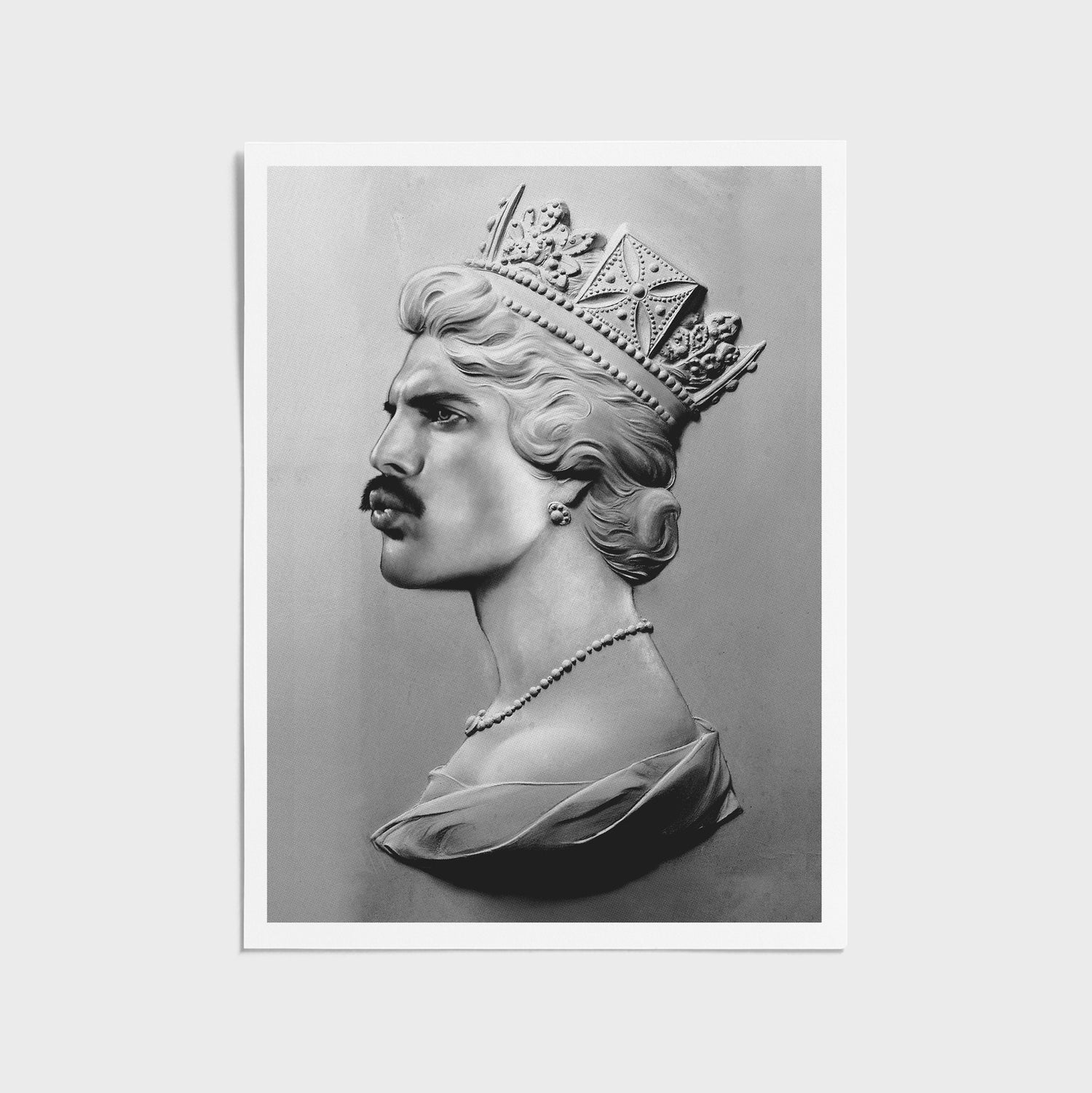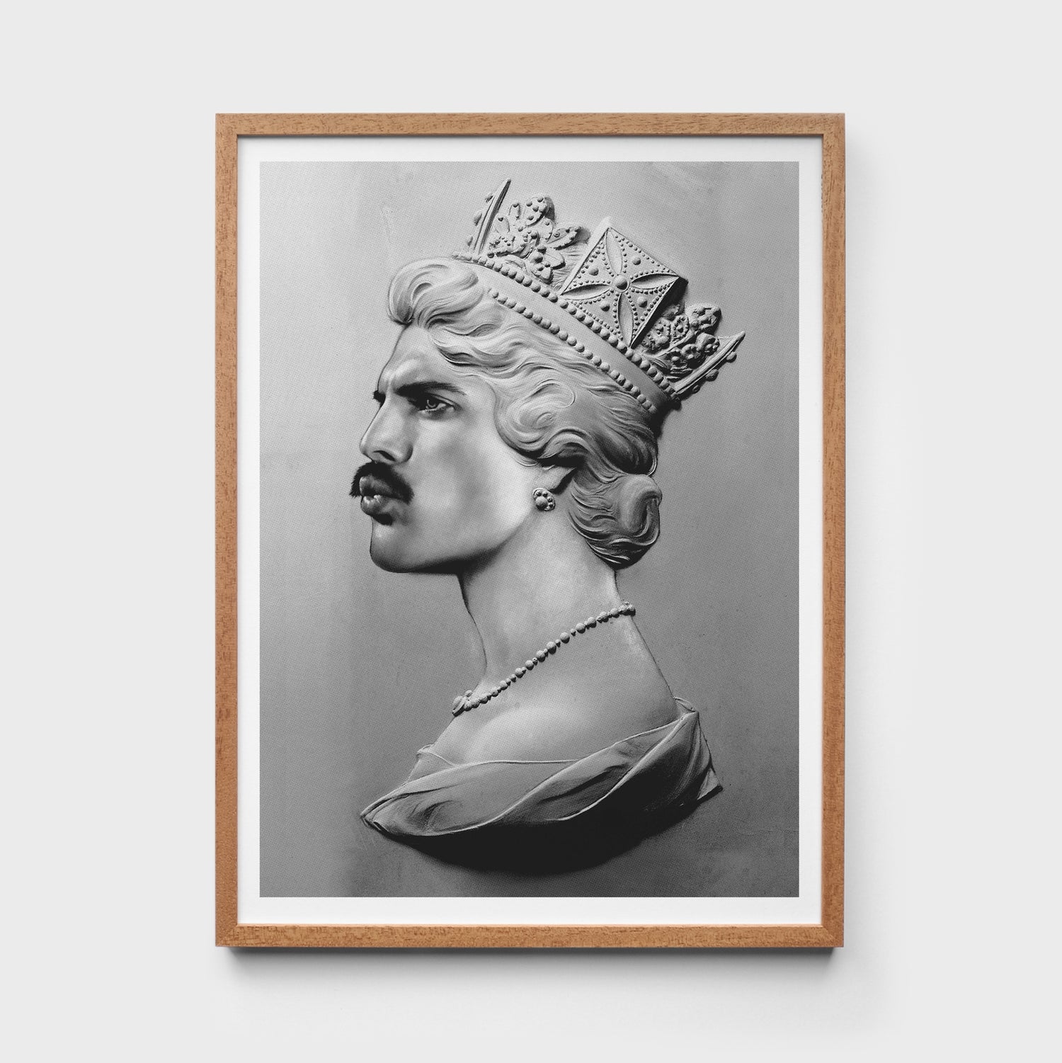 More than just a little bit special, this exclusive art print is a show-stopping celebration of the one and only Freddie Mercury. Dressed in fittingly regal attire, Freddie is reimagined in the style of a vintage Queen Elizabeth postage stamp—blending royal flair with rock royalty. Bold, witty, and unmistakably iconic, this piece is the perfect gift for any devoted Queen fan or a striking addition to your own gallery wall.
